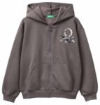 - Felpa garzata aperta con cappuccio. Tasche a marsupio e ricamo pailettes davanti. Fit regular leggermente corto.
