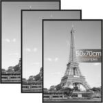 upsimples Confezione da 3 Cornice 50 x 70 cm, Cornici 50×70 Nero, Montaggio a Parete Orizzontale o Verticale con Strisce Scorrevoli, Per Galleria Fotografica