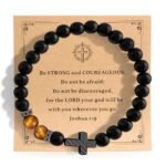 Variengrave Cross Religious Bracelet for Men, Natural Stone Tiger Eye & Black Beads Bracelets, Christian Gift for Birthday Graduation Easter Christmas