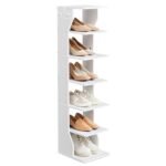 VASAGLE Scarpiera, Scaffale Portascarpe da Ingresso a 7 Livelli, Scarpiera Stretta, per Corridoio, Angolo, Cabina Armadio, Bianco LBS200T14