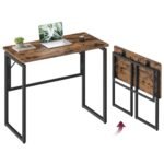 VASAGLE Scrivania per Computer Pieghevole, Piano in Unico Pezzo, Angoli Arrotondati, Tavolo da Ufficio, Camera da Letto Balcone Campeggio, Facile da Montare, 80 x 40 cm, Marrone Vintage LWD151KD01