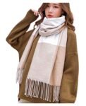 Wander Agio Women’s Fashion Scarves Long Shawl Winter Thick Warm Knit Large Scarf Big Plaid Camel 11