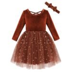 Weixinbuy Baby Girls Dresses Long Sleeve Tulle Velvet Twirl Fall Dresses for Baby Girls Toddler Baby Girl Fall Winter Clothes Burnt Orange