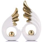 - MODERN ABSTRACT DESIGN, PERFECT TABLE DECOR: The ceramic gold statue is inspired by flames, leaf-shaped wings and beads, giving the sculpture a unique symbolism. The flame symbolizes power and victory, while the wings and beads represent guarding the most important person in your heart. It is not only a piece of abstract decorative art, but can also be used as living room decor and accessories, countertop decorations, and become a perfect decoration for coffee tables, mantelpieces or console tables.