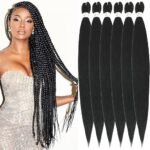 Xusuperb Extension Capelli per Treccine Africane Nero 30 Pollici Lunghe Kanekalon Easy Braids Extensions Nere 6 Confezioni Extension Capelli Sintetici per Trecce Black Braiding Hair Pre Stretched(1B)