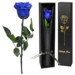 - Rose eterne con steli: le rose conservate con steli lunghi sono lunghe da 30 a 32 cm, hanno un diametro di 5-6 cm e alcune spine sono state rimosse per evitare lesioni. Le rose sono avvolte e confezionate in una raffinata scatola. Un regalo ideale per le donne!