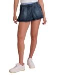 YMI Women's Pleated Ruffle Mini Skort with Boxer Waist, PT Tinted Deep Sky Blue, 03