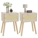 YMYNY Set di 2 Comodini, Tavolino con Cassetto decorato in rattan fatto a mano, Maniglia magnetica, Gambe di legno massiccio, 35×27×53cm, Comodino per Camera da Letto, Soggiorno, Naturale HST010N-2