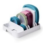 • FLEXIBLE STORAGE: Includes 5 adjustable dividers to organize food container lids of any shape or size. Sturdy dividers hold lids upright in a tidy row, so you can quickly see and select what you need when meal-prepping or storing leftovers.