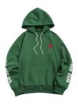 - The mysterious letter on the sleeve and rose make the hoodie is not boring anymore and exemplify your laid back leisure look