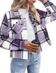 Zeagoo Flannel Shirts for Women Cropped Plaid Jacket Shacket Fashion Winter Button Down Purple Jackets Coat