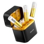 - Caricabatterie multifunzionale – Non solo è in grado di caricare rapidamente qualsiasi combinazione di batterie AA agli ioni di litio senza la necessità di caricarle in coppia, ma può anche essere utilizzato come organizer per batterie, rendendolo super facile da trasportare. (Non può caricare batterie da 1,2 V)