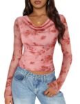 ZESICA Womens Floral Mesh Long Sleeve Tops 2026 Fall Cowl Neck Slim Fit Going Out Y2k Shirts Trendy Date Night Outfits,Pink,Large is available on Amazon at best discounted online price. Original price of this product is $ 19.990000000000002. You can buy this product at discounted rate $ 9.99.